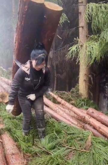 在短視訊平台上,最近有一組特別火的內容引發了廣泛的關注。兩位年輕女孩出現在一片濕冷的森林里,身穿黑色工作服,滿身泥土,手持伐木工具,仿佛正經歷著極為艱辛的伐木工作。視訊中的她們看上去充滿力量,汗水與泥水混合著在她們臉上和衣服上,仿佛在展示著一場「硬核」勞作。
