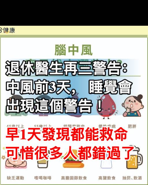 退休醫生再三警告: 中風前3天, 睡覺會出現這個警告 ! 早1天發現都能救命, 可惜很多人都錯過了