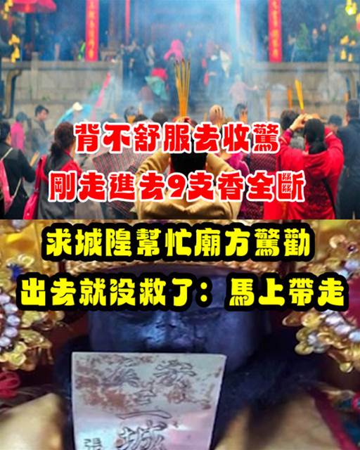 背不舒服去收驚!剛走進去「9支香全斷」求城隍幫忙 廟方驚勸「出去就沒救了」:馬上帶走