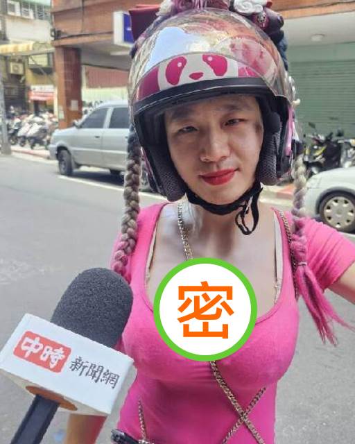 在台中的街頭,一位穿著桃紅色緊身套裝、踩著高跟鞋的外送員,成了路人目光的焦點。