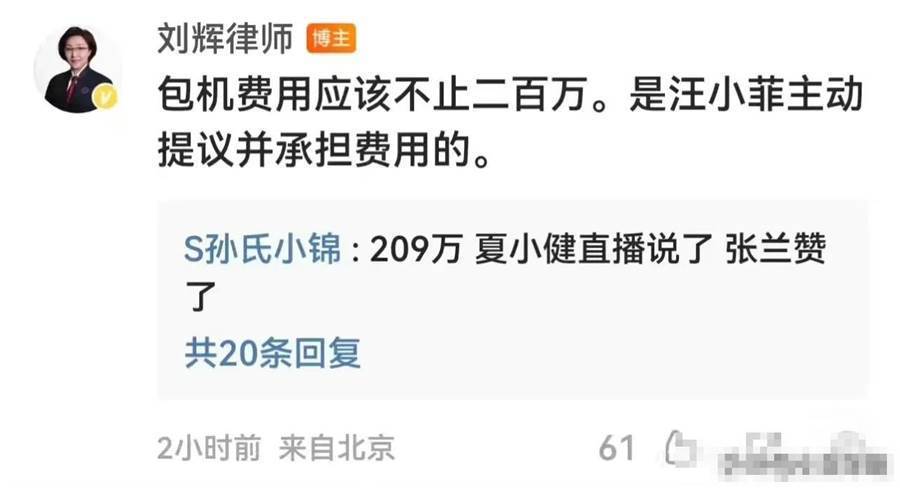 2月5日,大S的骨灰由專屬私人包機VistaJet從東京羽田機場運回台北松山機場,在下午3:00多鐘抵達。據悉,此次包機由王偉忠安排,汪小菲付款,費用大概209w!