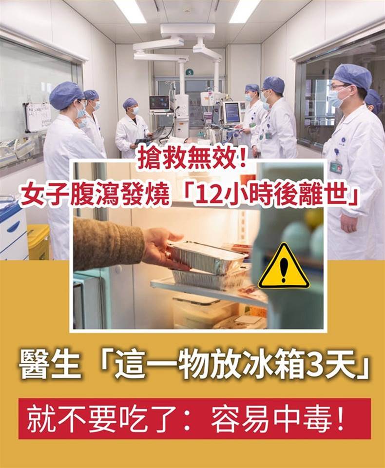 搶救無效!女子腹瀉發燒「12小時後離世」 醫生「這一物放冰箱3天」就不要吃了:容易中毒!